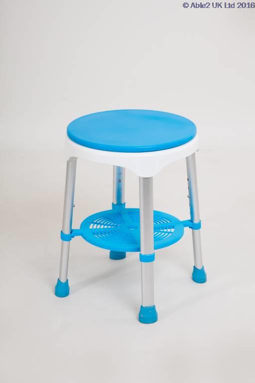 The Atlantis Swivel Top Shower Stool is beautifully contructed in aluminium. The blue plastic seat will swivel to make transfering on and off the seat a little