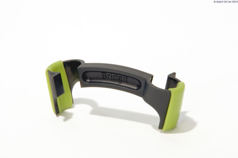 Bridgit is a clever clip that will keep crutches and walking sticks conveniently propped up within reach when they are not in use..