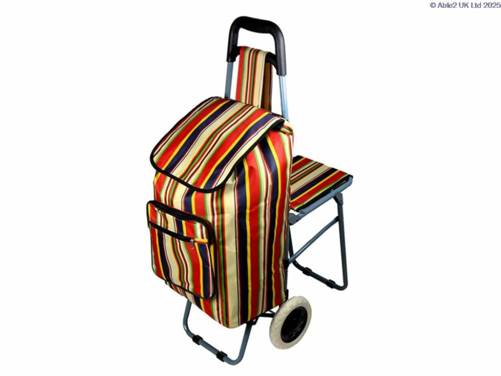 This handy shopping trolley has an innovative design that allows you to fold down a seat and take the weight off whenever you need.