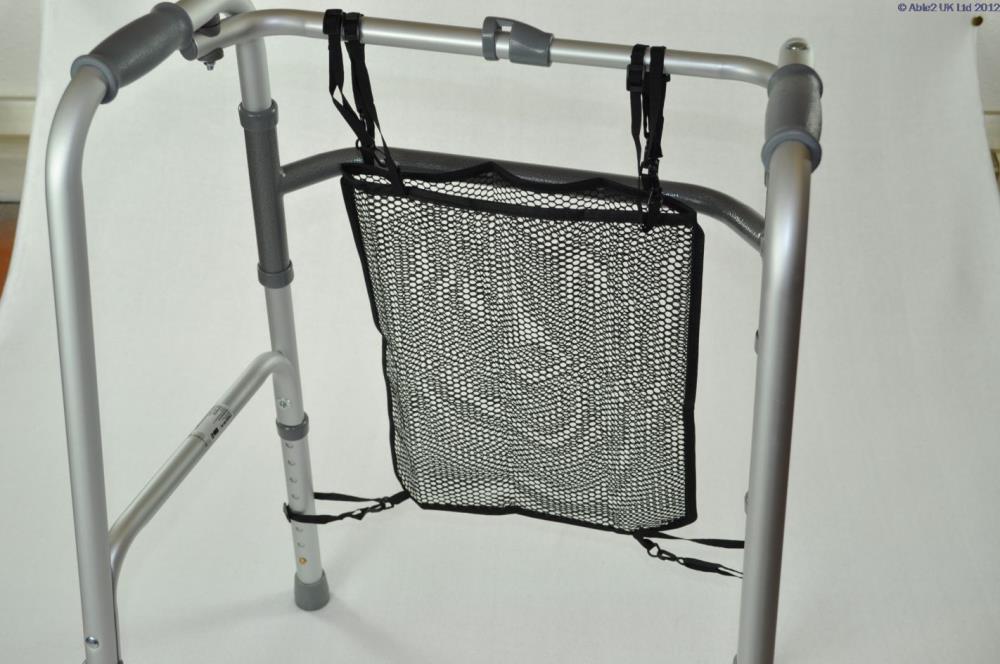 A simple knotted nylon bag that clips onto a walking frame at four points. Ideal to carry shopping or personal belongings conveniently close at hand.......
